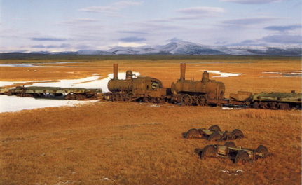 Early 1900’s train in Norton Sound, Alaska January 11, 2014 Norton Sound trains 1903 This is the O-4 and 4T engines, built in 1881 and 1886, In 1903, the farthest north and west standard gauge railroad in N. Amerial. council City and Solomon Railroad. Norton Sound, Bering Sea, Solomon Alaska – 1997 www.rosenberg-artphotos.com
